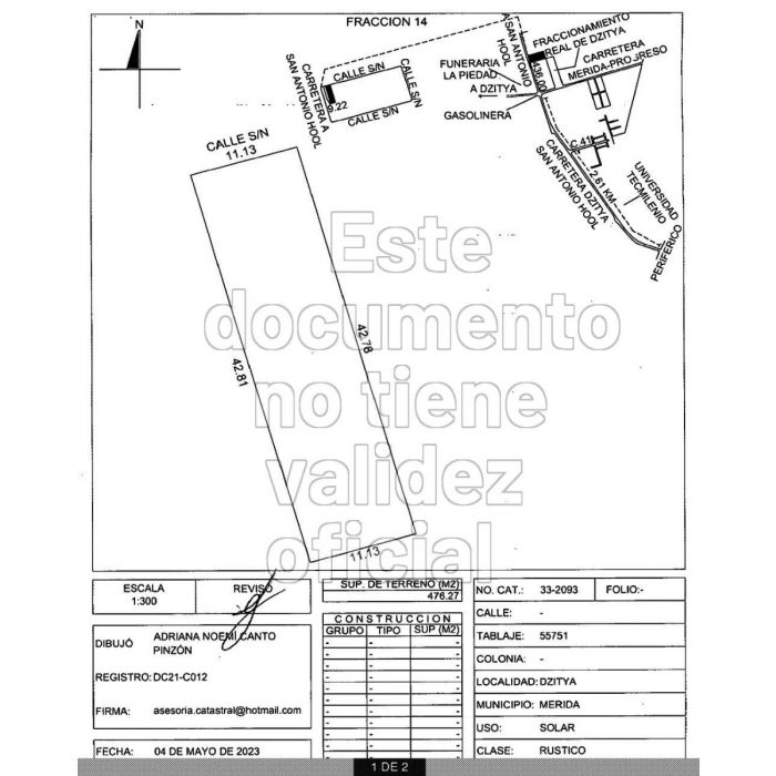El terreno es de figura irregular y tiene una superficie total de 4,522.17 metros cuadrados.